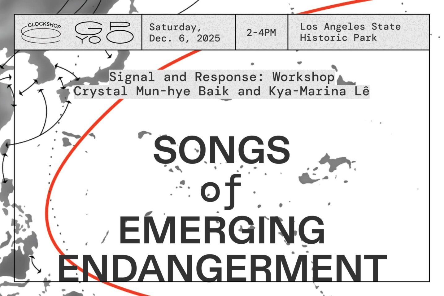 Signal and Response, a two-part program series co-presented by Clockshop and GYOPO, aims to activate “Songs of Emerging Endangerment,” a sound installation by TJ Shin at Los Angeles State Historic Park.