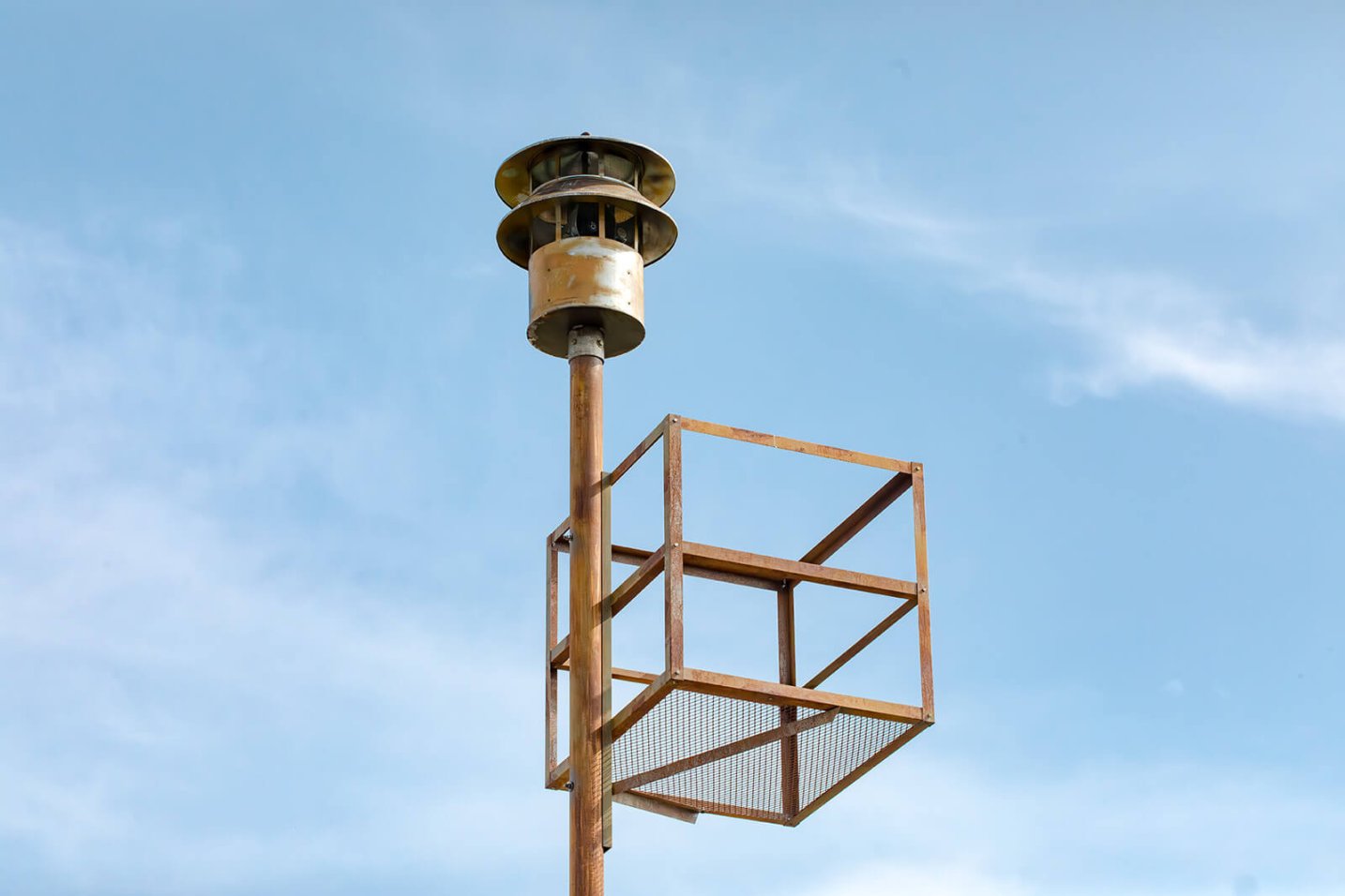 Songs of Emerging Endangerment by artist TJ Shin, commissioned by Clockshop, is a sound installation using mimicry to map systems of global migration. Installed at Los Angeles State Historic Park in a city shaped by Cold War–era urban planning and waves of migration from the Asia-Pacific, the project features a 30-foot-tall sculptural air raid siren that projects a composition of imitated bird calls scheduled throughout the day.